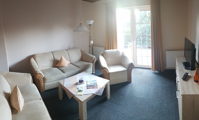 Jede Wohnung verfügt über einen gemütlichen Wohnraum mit SAT- TV, eine Küche mit Essecke, 1 bzw. 2 Schlafzimmer incl. Bettwäsche, DU/ WC incl. Handtücher, Balkon oder Terrasse.